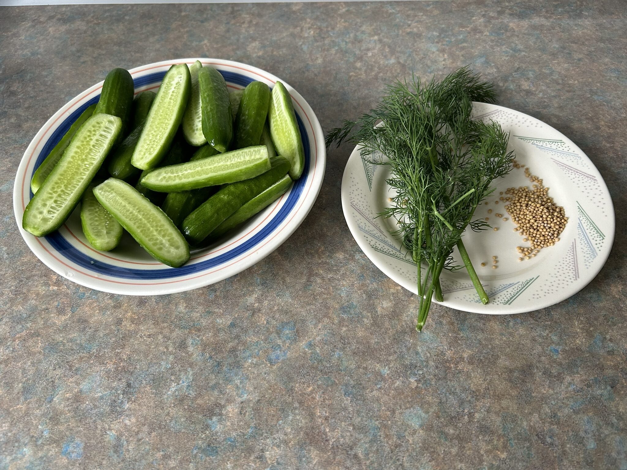 - 5. Plaats vervolgens de snoepkomkommers en de dille in de weckpot.